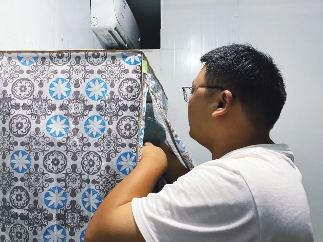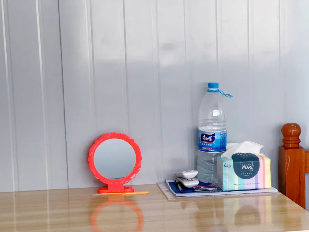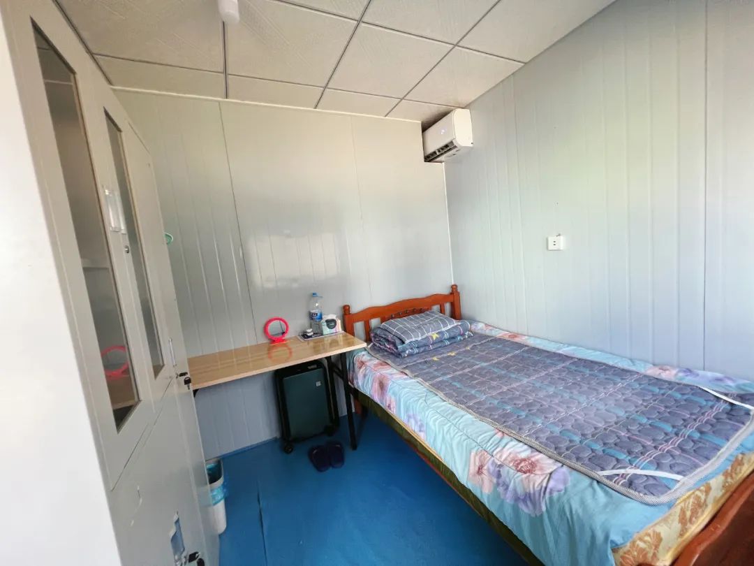 工地住宿区是清一色的集装箱房屋,吴清扬住了一间单间。在数平方米的房间里,一张大床占去了近三分之二空间,剩余的空间还摆放了一套桌椅、一个简易布衣柜和一台小冰箱,能够活动的空间大概有两平方米左右。