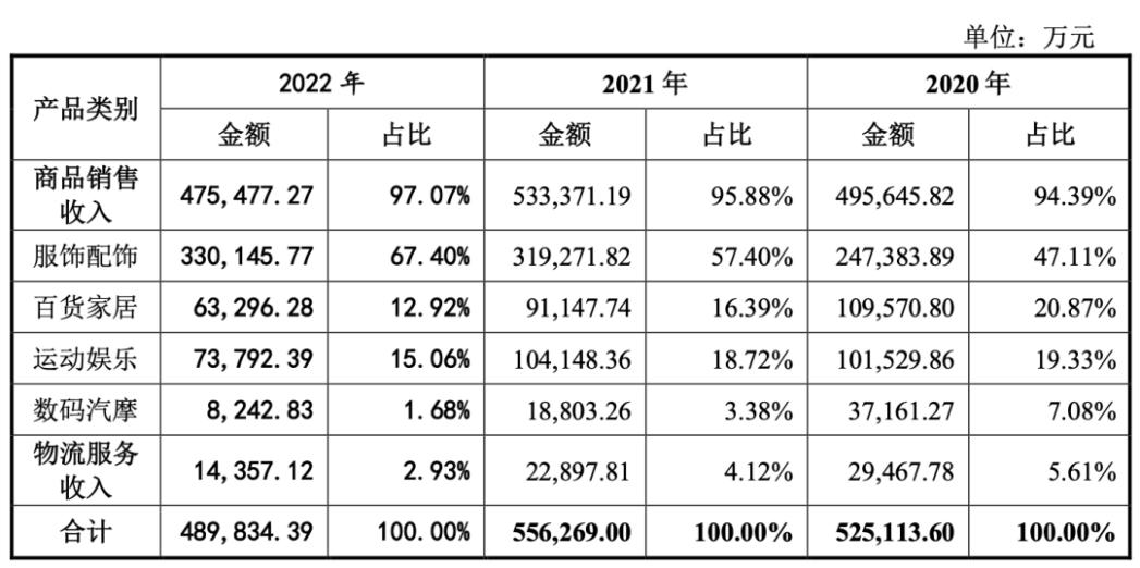 以2022年来看,服装是最大的收入来源,占比达67.4%,总收入33亿。此外,赛维还布局了百货家居、运动娱乐和数码汽摩等。