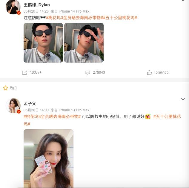 除此之外,《桃花坞3》录制期间,王鹤棣等17位常驻嘉宾在微博上宣布“集体搬家海南”,并迅速发起了“全员晒去海南必带物”的话题。彼时节目尚未开播,但这两个话题就已经为节目组狂揽了5亿话题阅读量,同时也勾起了大众对第二季的情怀。而这背后,都离不开节目组的主导和助推。