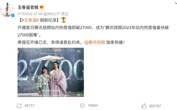 定档到开播的24小时里,《玉骨遥》官微发布了超30条微博。《安乐传》也在开播后发布了人物海报、开通角色微博号等。市场热度也印证了这一策略的有效性:暑期以来,《偷偷藏不住》《长风渡》《玉骨遥》先后在开播后快速刷新站内热度时间纪录。这背后营销集中发力壮大声势的元素不可忽视。