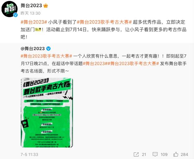 腾讯视频的《舞台2023》不仅发布会、阵容官宣声势浩大,官微更是根据这两年的情怀杀、考古风定制了“歌手考古大赛”,还有抽门票、支持团招募、音源发布等多种玩法,颇有未播先火的意思。《一起撸串吧》在微博上开辟了「串小二夜话」、「串门赶烤」、深夜助眠ASMR等玩法,将“夜营销”玩到极致。