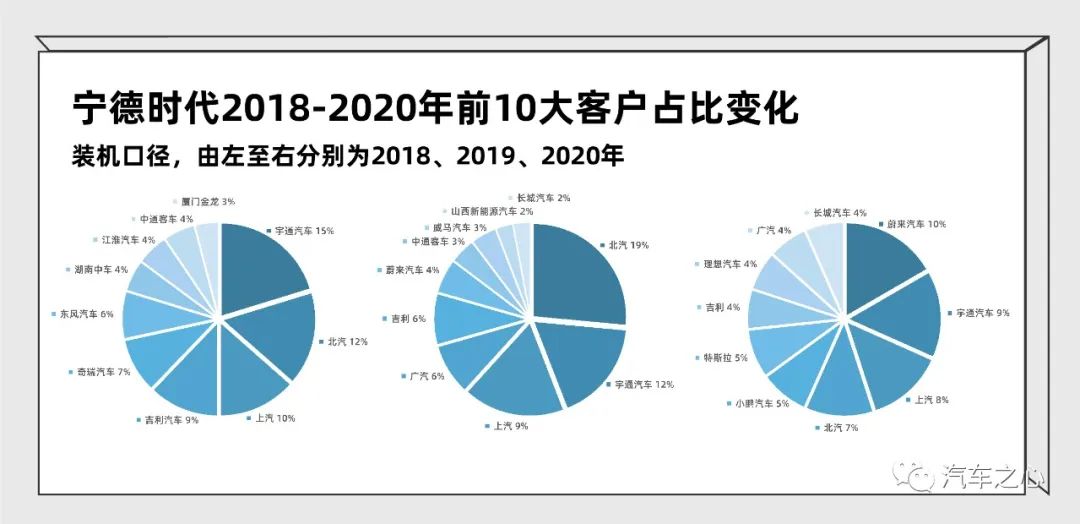 2018、2019 、2020 年 宁德时代前五大客户 (均是大型车企)
