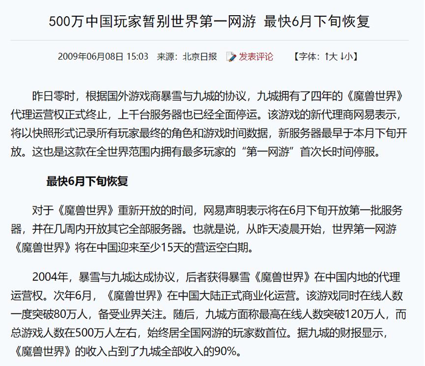 2009年,《魔兽世界》因代理问题停服,成为一个标志性事件。部分玩家开始放弃网络游戏,同时PC价格降低、家用宽带普及,加上长时间没有出现热门端游,部分人不再把网吧作为游戏基地。