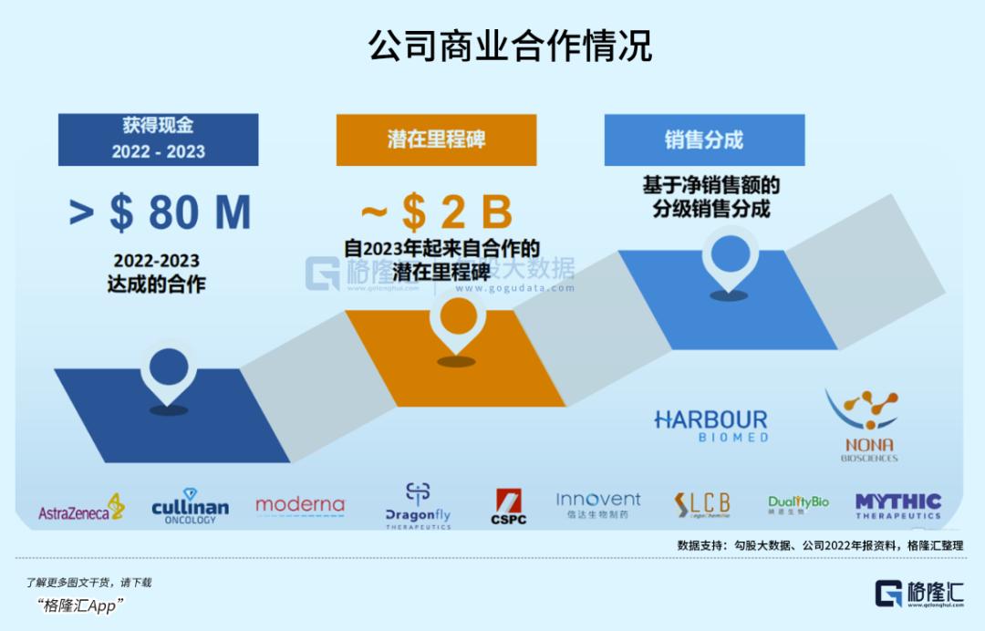 根据公司公告显示,公司仅在2022年至2023年第一季度,就已经通过与全球药企合作的方式获得现金超过8000万美元,预计自2023年起来自合作的潜在里程碑金额约达到20亿美元,另外按照项目约定,在产品成功推进商业化后和铂医药也会拿到对应的销售分成收入。
