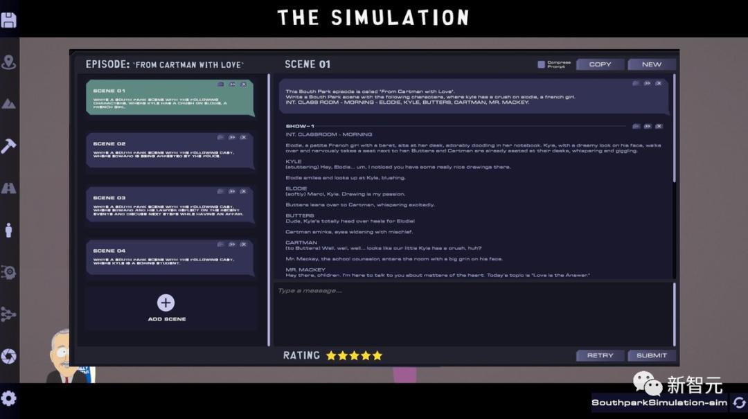 在此项研究中,研究者大量使用GPT-4来影响模拟中的智能体,以及生成南方公园剧集的场景。