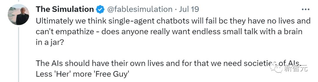 Fable的研究者表示:所以单个AI Agent都会将失败,因为他们没有生命,无法共情——没有人会想当个缸中之脑,无休止地和人闲聊。