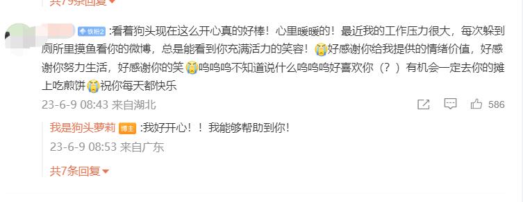 对网友来说,一张好看的照片,一次2分钟的互动,就可能成为难得的情绪养料。这些新来的粉丝大多被狗头萝莉摊煎饼时阳光快乐的模样所打动。
