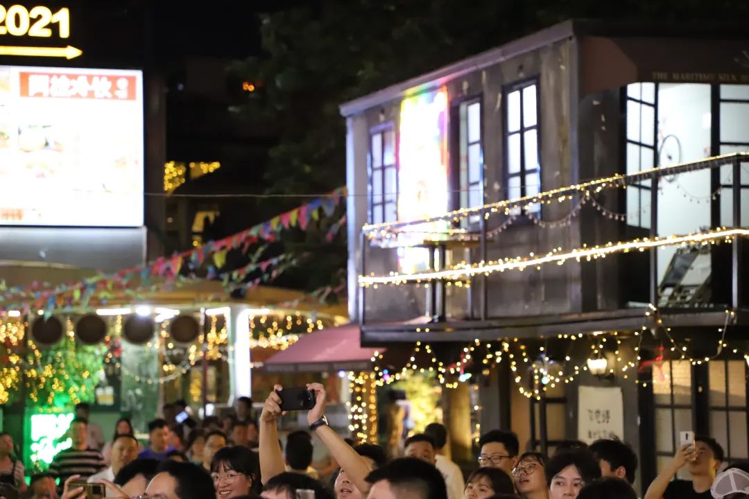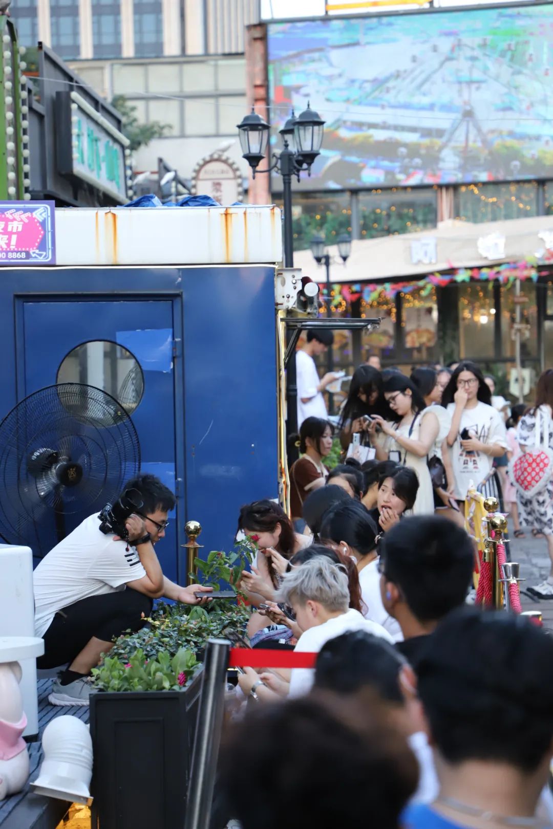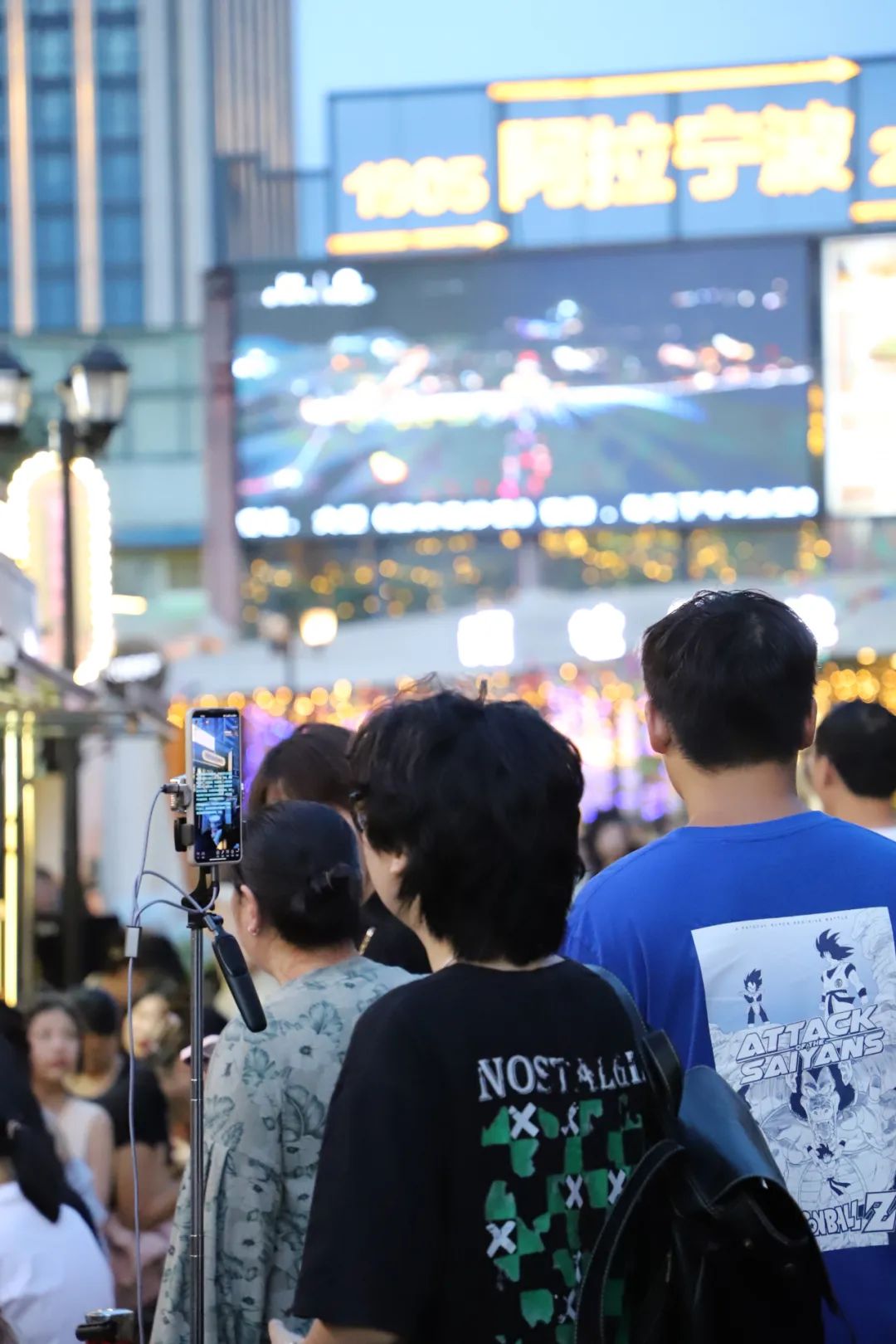 人群外围,两位保安大叔拿起喇叭,开始维持秩序。3位宁波本地博主则挤到煎饼摊前架起手机,准备全程直播。