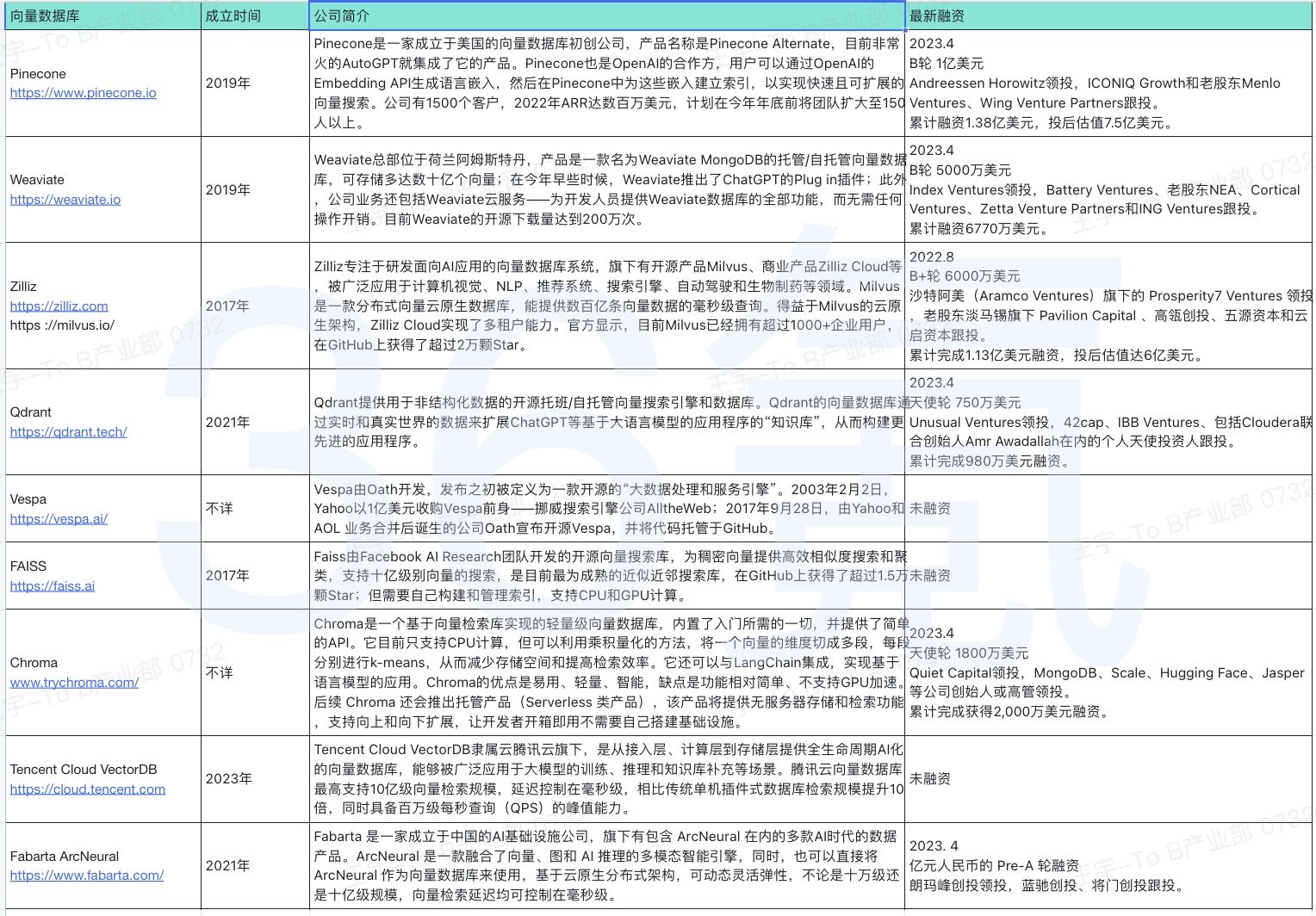 在今年4月,全球5家知名向量数据库纷纷获得融资,这更加印证了向量数据库在生成式AI时代的价值。