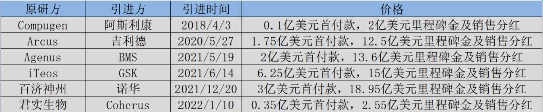 实际上,通过授权引进方式布局TIGIT靶点的并非诺华一家,吉利德、阿斯利康、BMS、GSK等公司其实均是通过授权引进方式实现快速入局的。