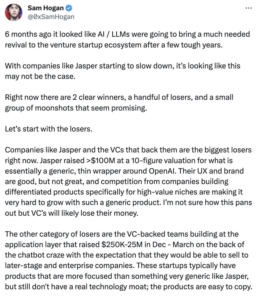 Jasper的落败,映射出一众AIGC应用类创企的隐忧。