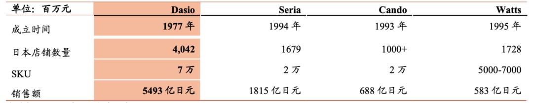 百元店:兴起于90年代后,产品绝大部分定价为100日元,相当于中国的2元店,美国的1美元店,产品种类覆盖广泛,走薄利多销逻辑。