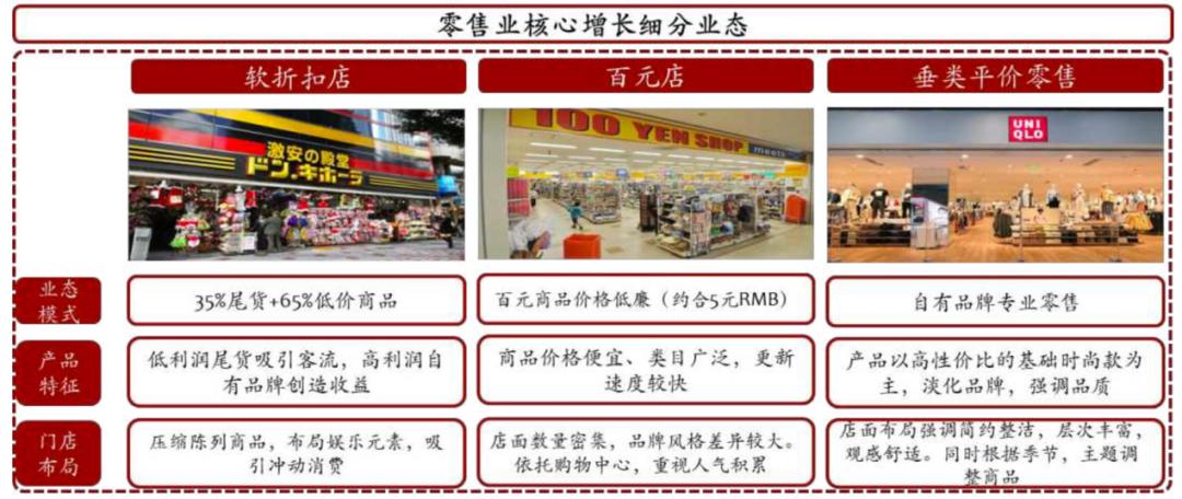 综合分析下来,日本90年代崛起的三种新零售业态拥有共同的特征:低价+注重品质,整体凸显性价比优势。