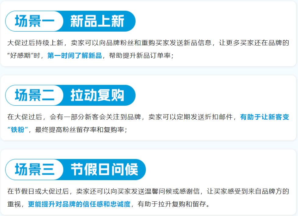 卖家的促销邮件发向的人群,具有一定的“私域性”,是卖家的“老流量”。