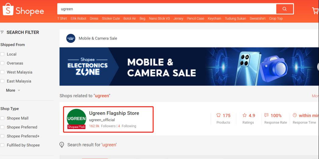 图/绿联在Shopee品牌店铺