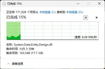 微软是不管你多急,反手给你一个离谱的预计时间,那这个时候你就会想了: “ 这垃圾硬盘也 tm 太慢了 ”