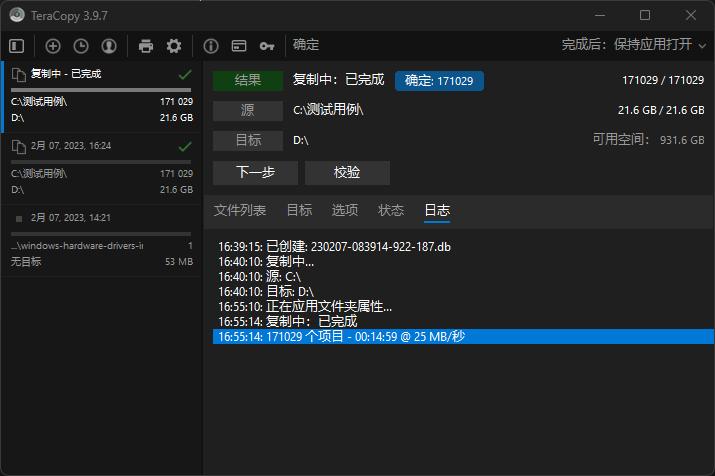 同时, FastCopy 支持的高级功能, TeraCopy 也都支持。