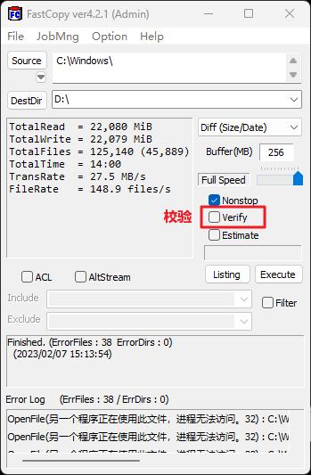 但 Fastcopy 完全能避免这种事,它会自动处理重名文件、复制出错还有权限问题。