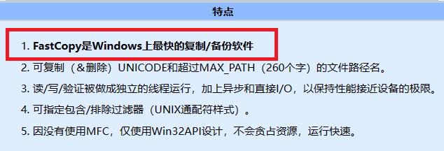 性能这一块,按作者自己的话说, FastCopy 是 Windows 系统上最快的复制软件!