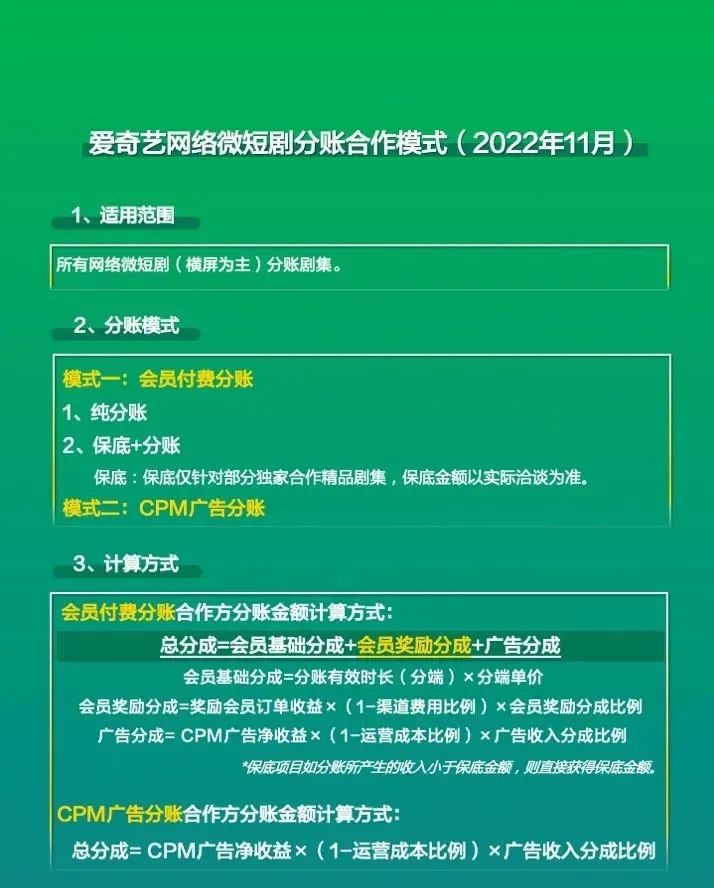 去年11月,爱奇艺在自家微信公众号发布了网络微短剧分账合作模式。面向上游微短剧创作方,创作方可通过会员付费分账或CPM广告分账模式上线爱奇艺平台。此举的目的显然是丰富内容供给,但从今年上半年仅仅7部的新剧数量来看,截止目前,此举还不足以补足爱奇艺的内容数量短板。