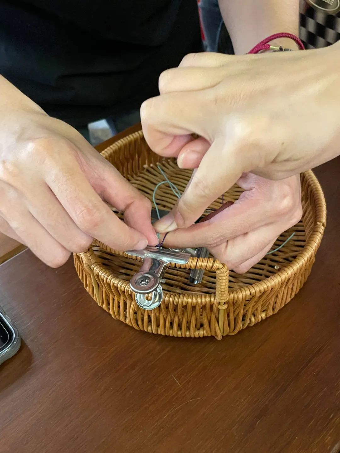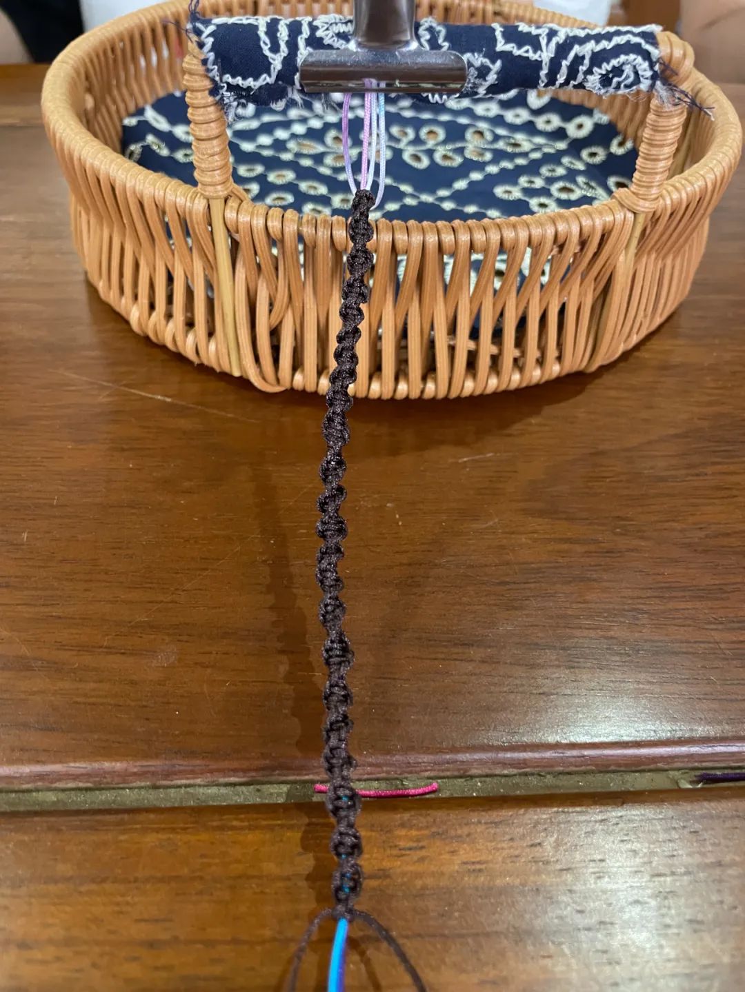 虽然开头并不顺利,但编绳的时候小米还是感受到了难得的平静。每一条线的穿引和收束她都在认真地感受,仔细观察着两条绳子在自己手上产生的微妙变化。