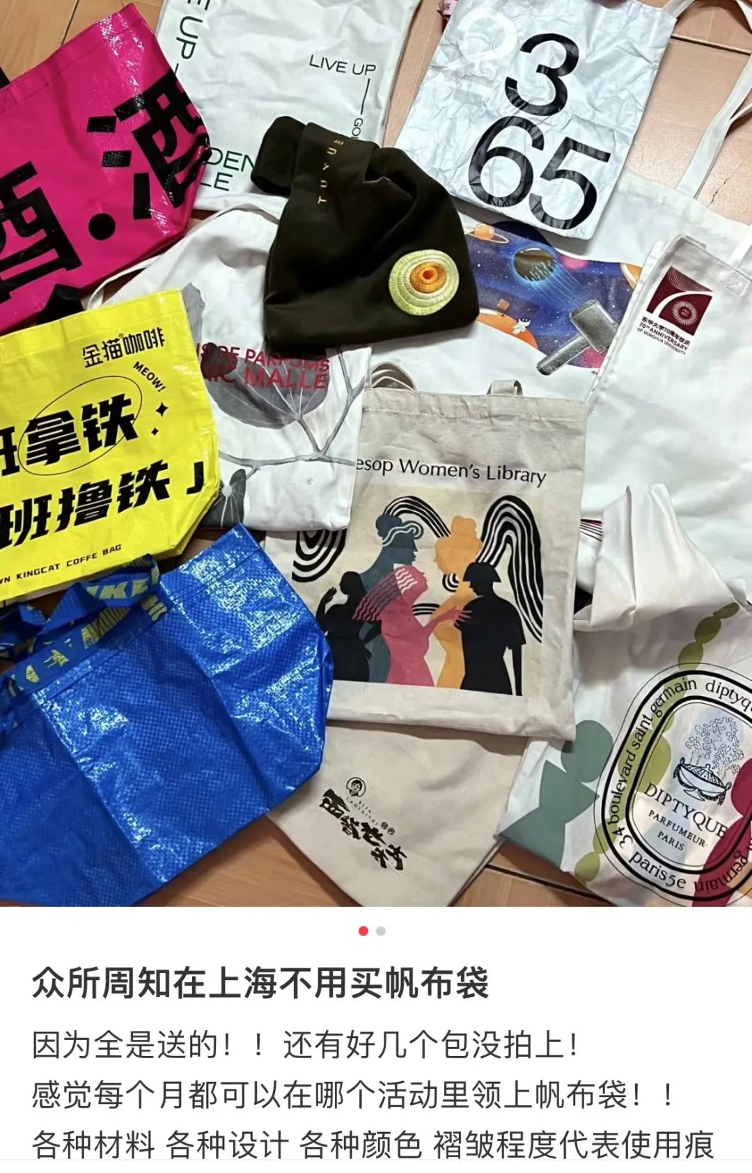 家里不藏十几个品牌帆布袋,都算不上都市丽人。(图/@鱼丸大娃)
