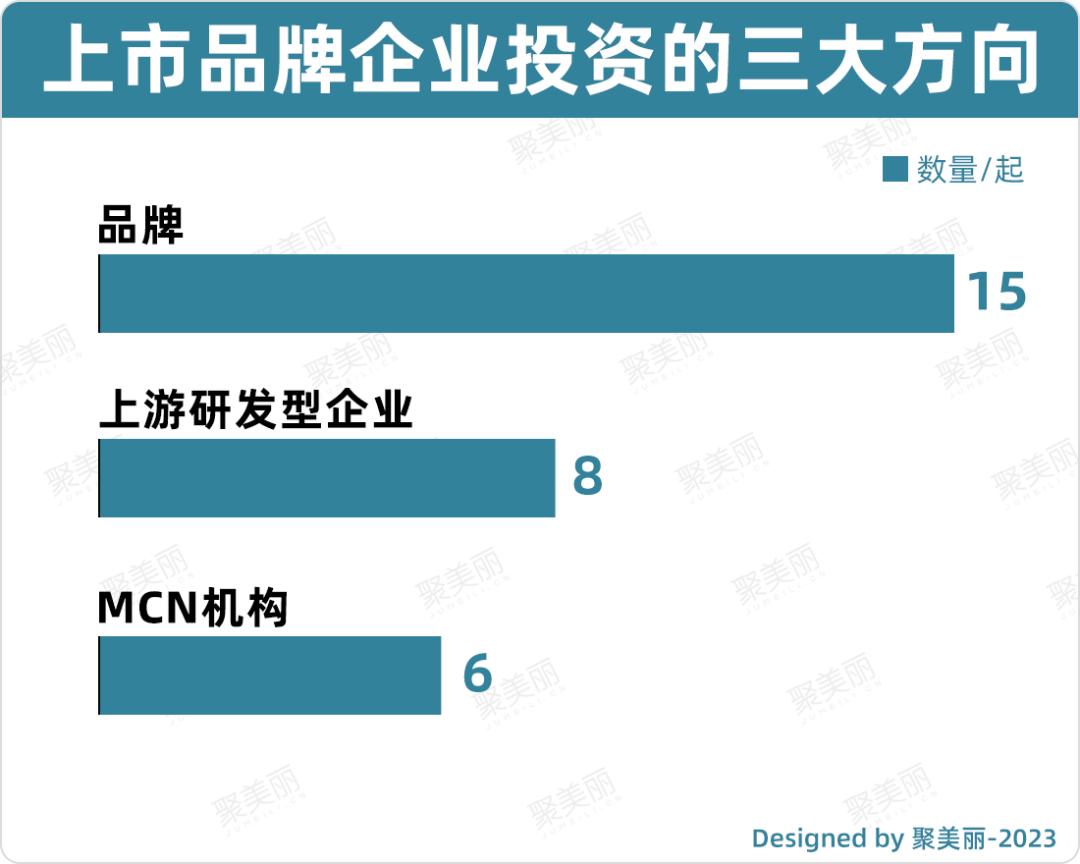 从投资方向上看,上市品牌企业们的投资“炮火”主要集中在品牌、上游研发型企业、MCN机构三个方向。