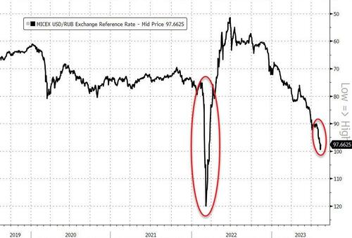 在非美货币方面,美元兑离岸人民币隔夜升至了年内最高水平,美元兑日元也升至145.58,逼近去年触发日本央行入市干预提振日元的水平。而更糟糕的或许是本身就面临国内困境的一些新兴市场货币,例如俄罗斯卢布和阿根廷比索。