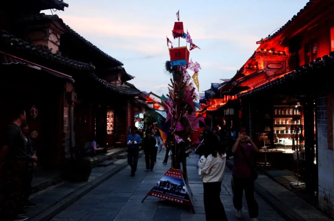 狂欢节让这座小众、清净的古城彻底火了起来。早些在计划行程时,我就发现,火把节当天从大理站往返巍山古城的高铁票,许多车次的都已售罄。巍山古城及其附近的民宿、酒店价格也是暴涨,有些甚至已经满房。
