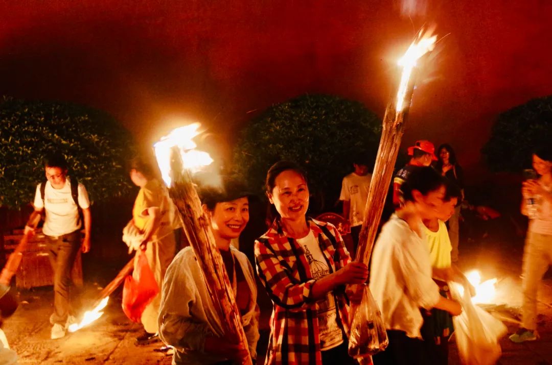 街上瞬间挤满了看火把的人群。白天还很慵懒的生物们一下都兴奋地活了起来,忙着拍照合影。