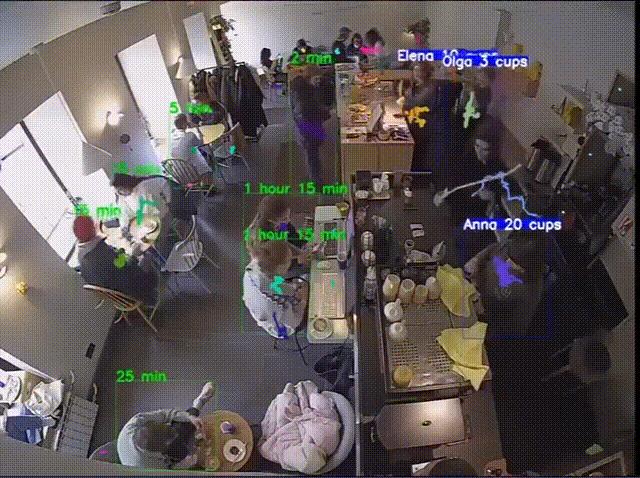 在一个咖啡店里,每个顾客进店待了几分钟,每个服务员给顾客端了几杯咖啡,都在视频里显示得一清二楚!