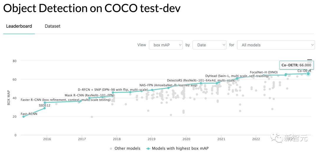 当前,在目标检测算法的性能上,来自国内团队的「DETRs with Collaborative Hybrid Assignments Training」,凭借了高达66 AP的成绩霸榜COCO。该工作已经被ICCV 2023录用。