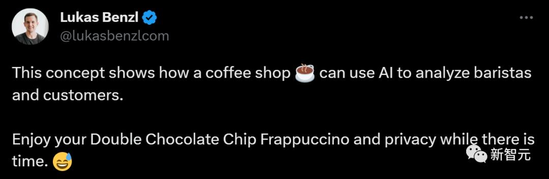 发布视频的网友表示:这个概念展示了咖啡店是如何使用AI分析咖啡师和顾客的。请在咖啡店充分「享受」您的隐私吧。😂