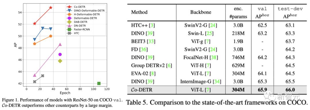 通过训练多个平行辅助头(受到一对多标签分配的监督,如ATSS和Faster RCNN),全新的Co-DETR可以轻松提升端到端检测器中编码器的学习能力。