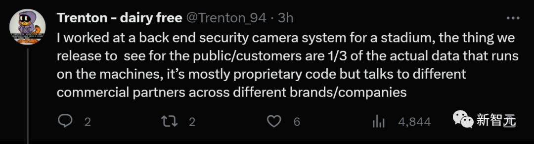 「我在体育场的后端安全摄像头系统工作,我们向公众发布的内容,只有实际数据的1/3。」
