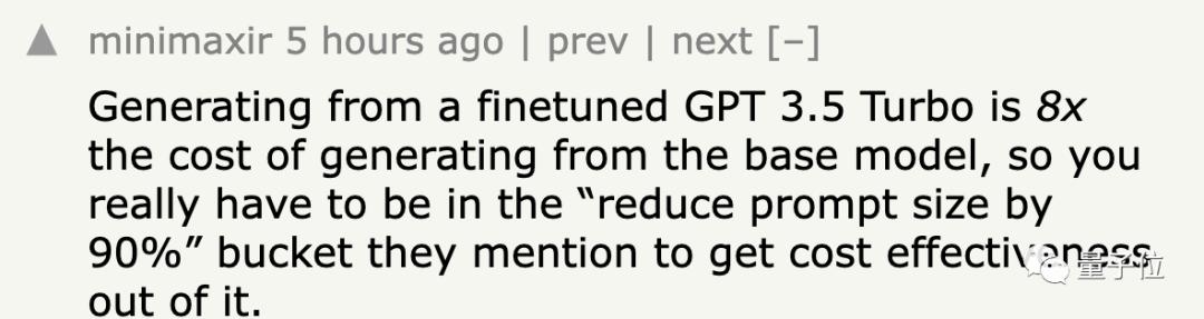 不过也有人不吃这套,吐槽微调成本太高,其生成成本是基础模型的8倍,必须要按照他们所说“将提示大小减小90%”,才能从中获取效益。