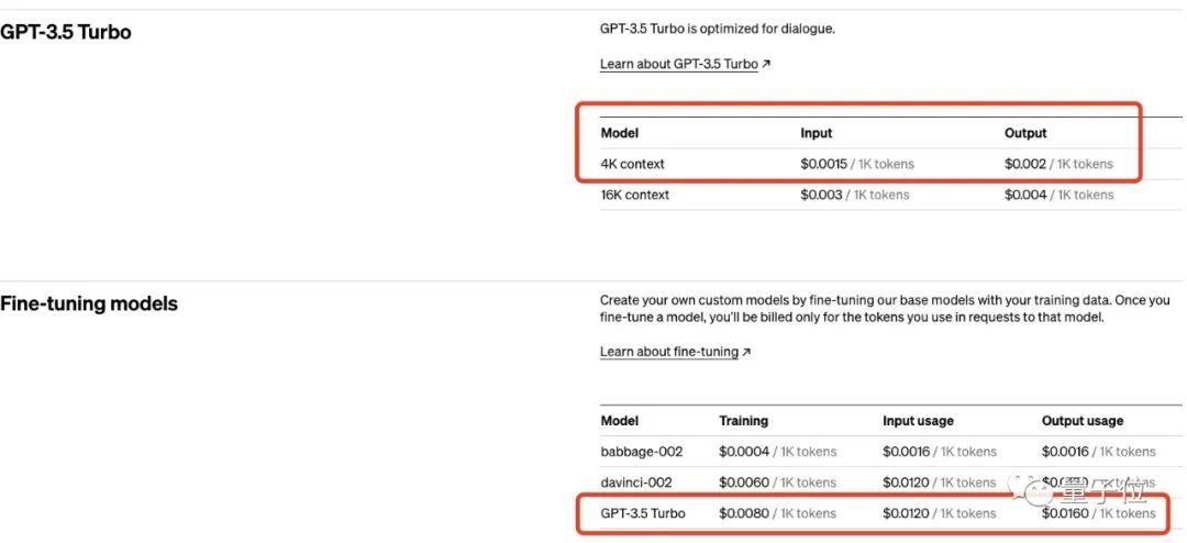 更新之余,OpenAI还直接明示了定价计划,微调费用主要分为初始训练费用和使用费用。