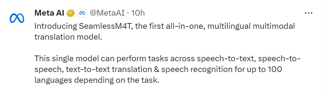 100种语言直接翻译!Meta推出SeamlessM4T新模型,核心数据集还开源