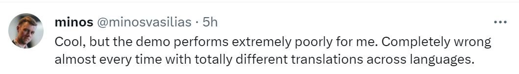 但也不是一致好评,有网友就表示SeamlessM4T的表现不尽如人意,直言:“几乎每次都完全错误”。