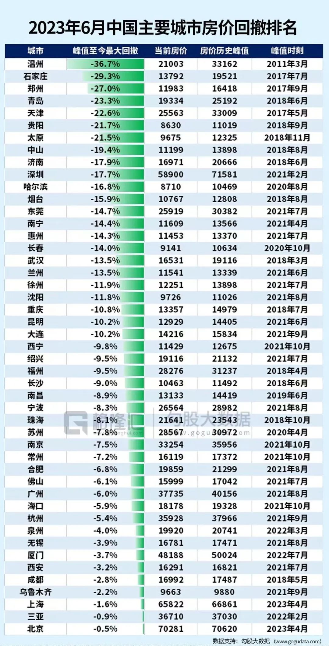 机构披露的数据显示,到今年6月份,青岛的均价为19334元/平方米,相较于2018年6月份的高点下跌了23.3%,跌幅位居全国第四。