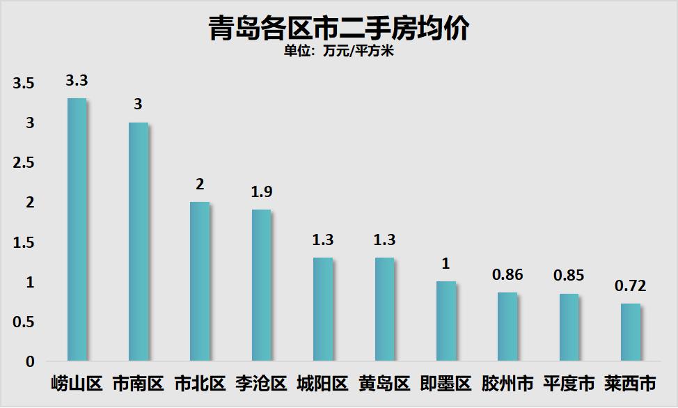 目前,崂山区的仍高达3.3万元/平方米,市南区3万元/平方米。