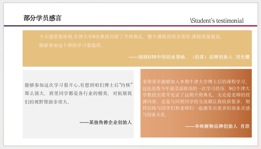 36氪创投氪堂联合牛津大学推出了牛津大学基布尔学院博士后研究班,为企业家、创业者、企业高管、高校教师及科研人员等提供认知、圈层、人脉等多维度的学习和成长空间。自项目发布以来,学员报名踊跃,目前已经成功举办4期,招收70余名企业家、教授、银行家等来自各个行业的精英学员。