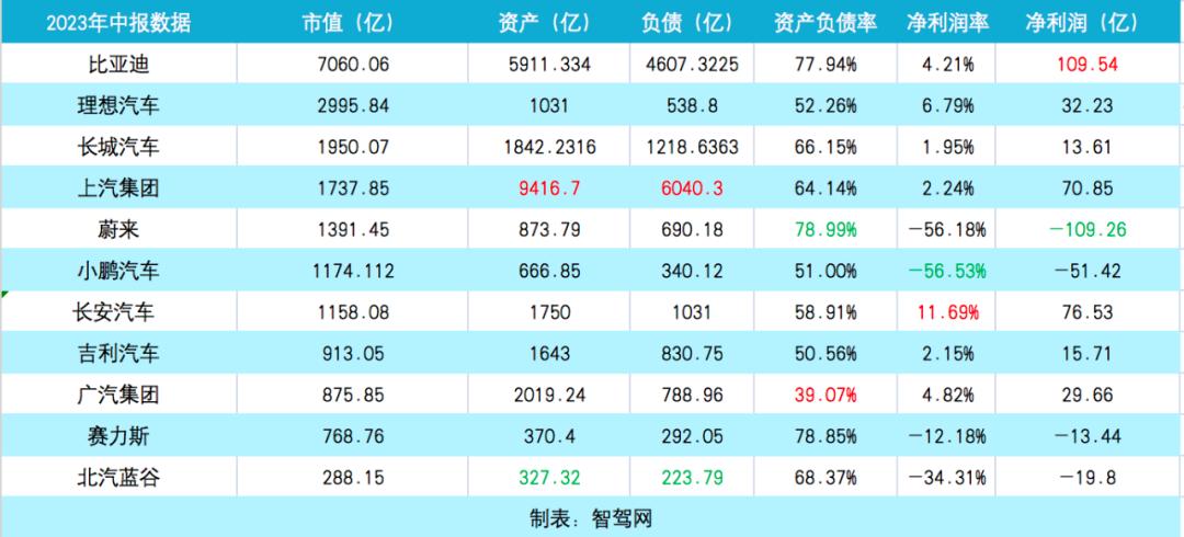 我们综合统计了多家本土汽车品牌和主流外资品牌的资产负债情况与盈利能力,数据体现的事实可能是反直觉的。