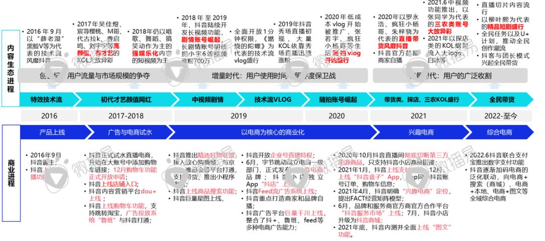 回顾抖音的内容生态与商业生态的发展史,不难看出以电商为核心的全民带货发展战略。