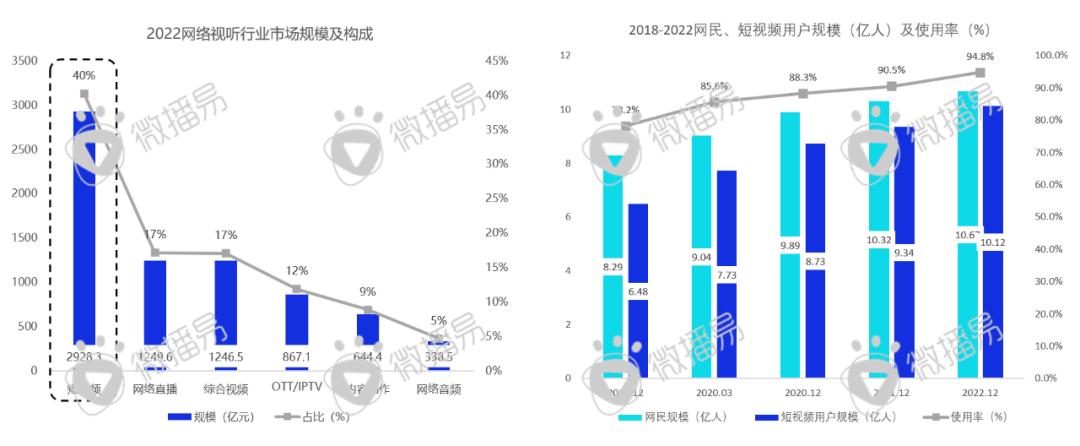 截止2022年年底,中国短视频已接近3000亿元的市场规模,并且拥有超10亿的用户,占整体网民的近95%,可以说短视频依旧是移动互联网的优势赛道