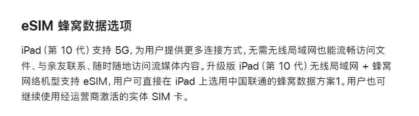 而除了新款Apple Pencil之外,苹果还一同发布了国行版 iPad(第 10 代)无线局域网 + 蜂窝网络机型。