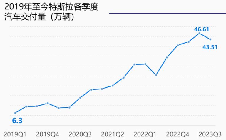业绩不及预期的核心是,特斯拉汽车产销量表现不佳。三季度,特斯拉全球范围内共生产电动车43.05万辆,交付43.51万辆,分别同比增长约18%、27%,环比分别下降10.3%、6.7%。产销量环比下滑,也是2022年二季度以来首次。