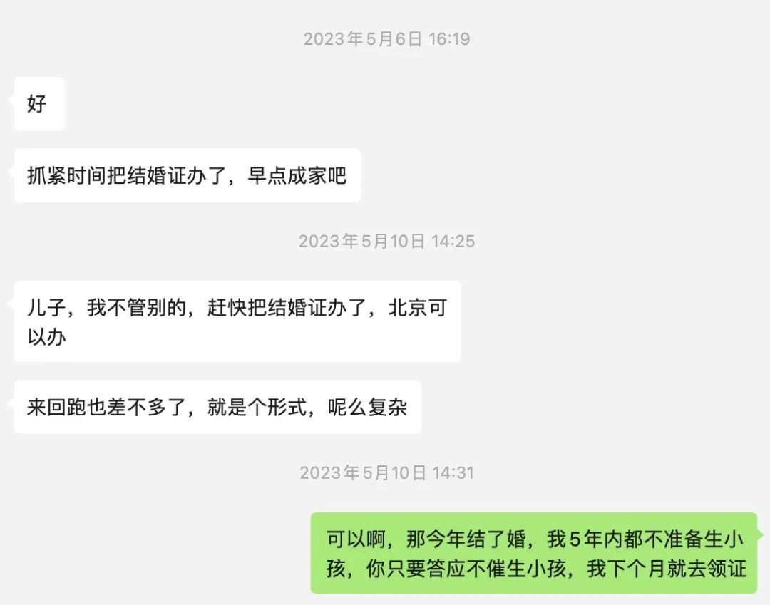 新的矛盾是她开始催我回成都结婚了。她一直在反复给我灌输这种观念:生娃是理所当然的。这个年龄就该结婚后平稳生活,也不指望我有什么更大的事业成就了,我下半生的任务就是去培养小孩。