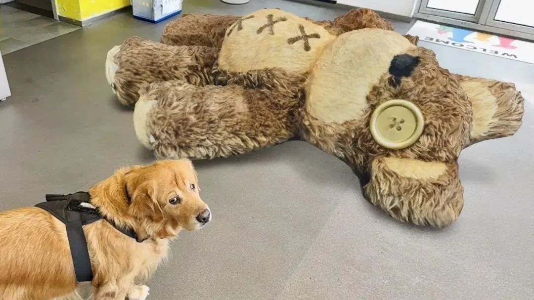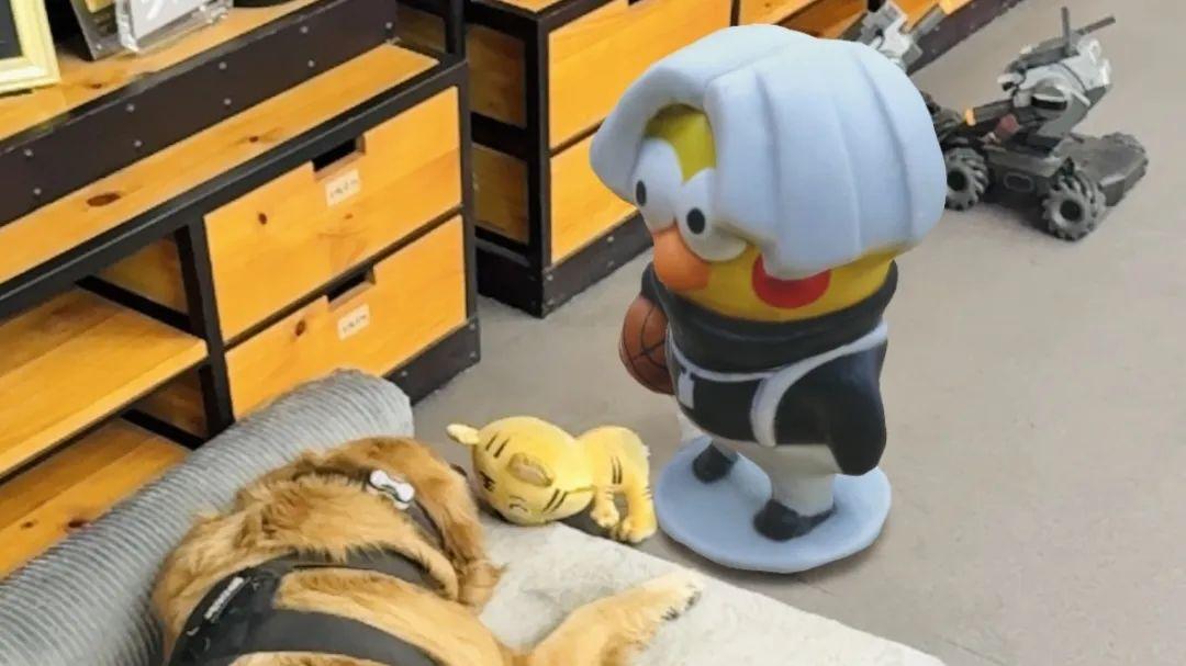 就算它离开了事故多发地,跑到同事座位下寻求庇护,结果被一个超大的卡布达玩偶拦住了去路。