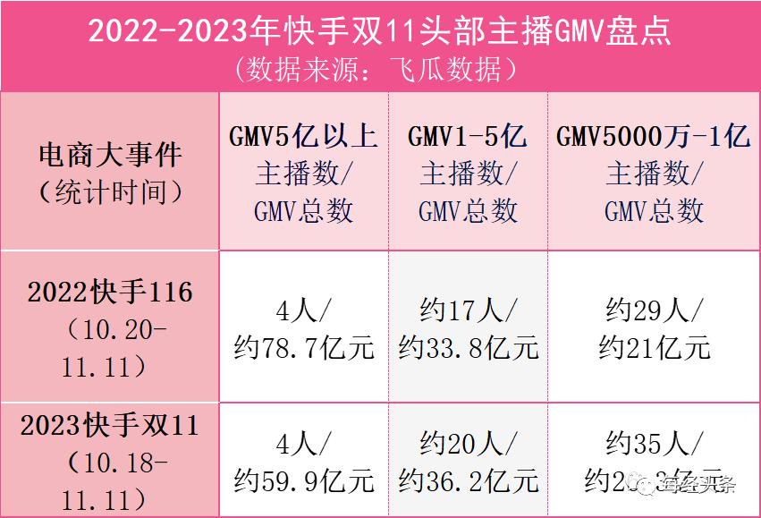 而另一方面,今年快手“双11”期间,大促GMV在“1-5亿元”区间的主播数量增加了3人,达20人;整体贡献GMV达到36.2亿元,同比去年增长7%;大促GMV达到“5000万-1亿”区间的主播数量增加6人,达35人;整体贡献GMV达到26.3亿元,同比去年增长25%。
